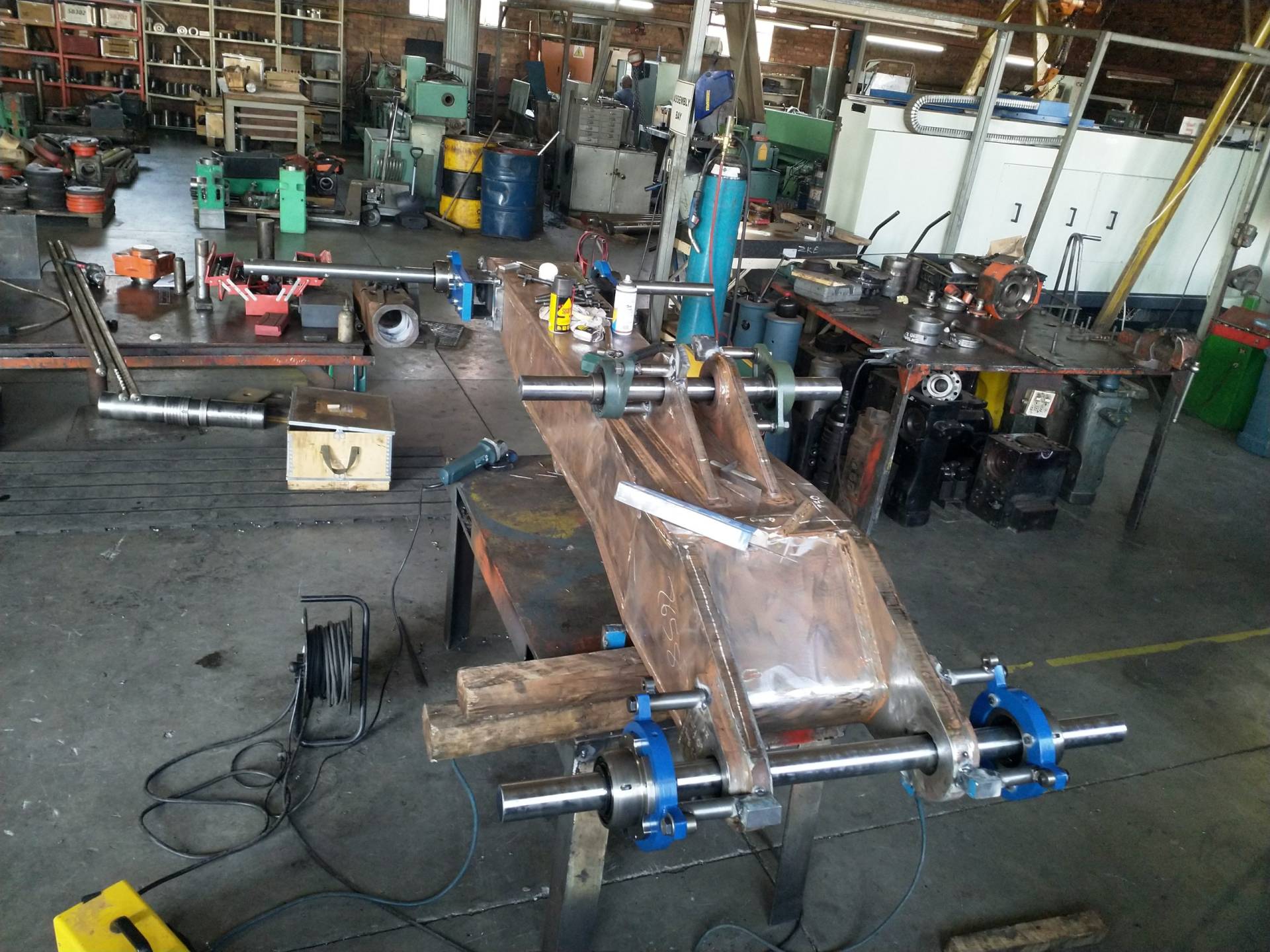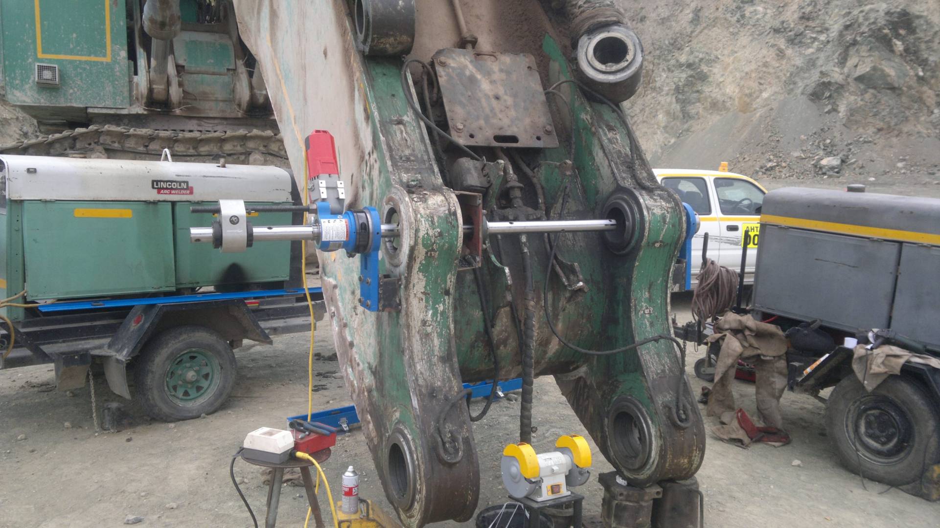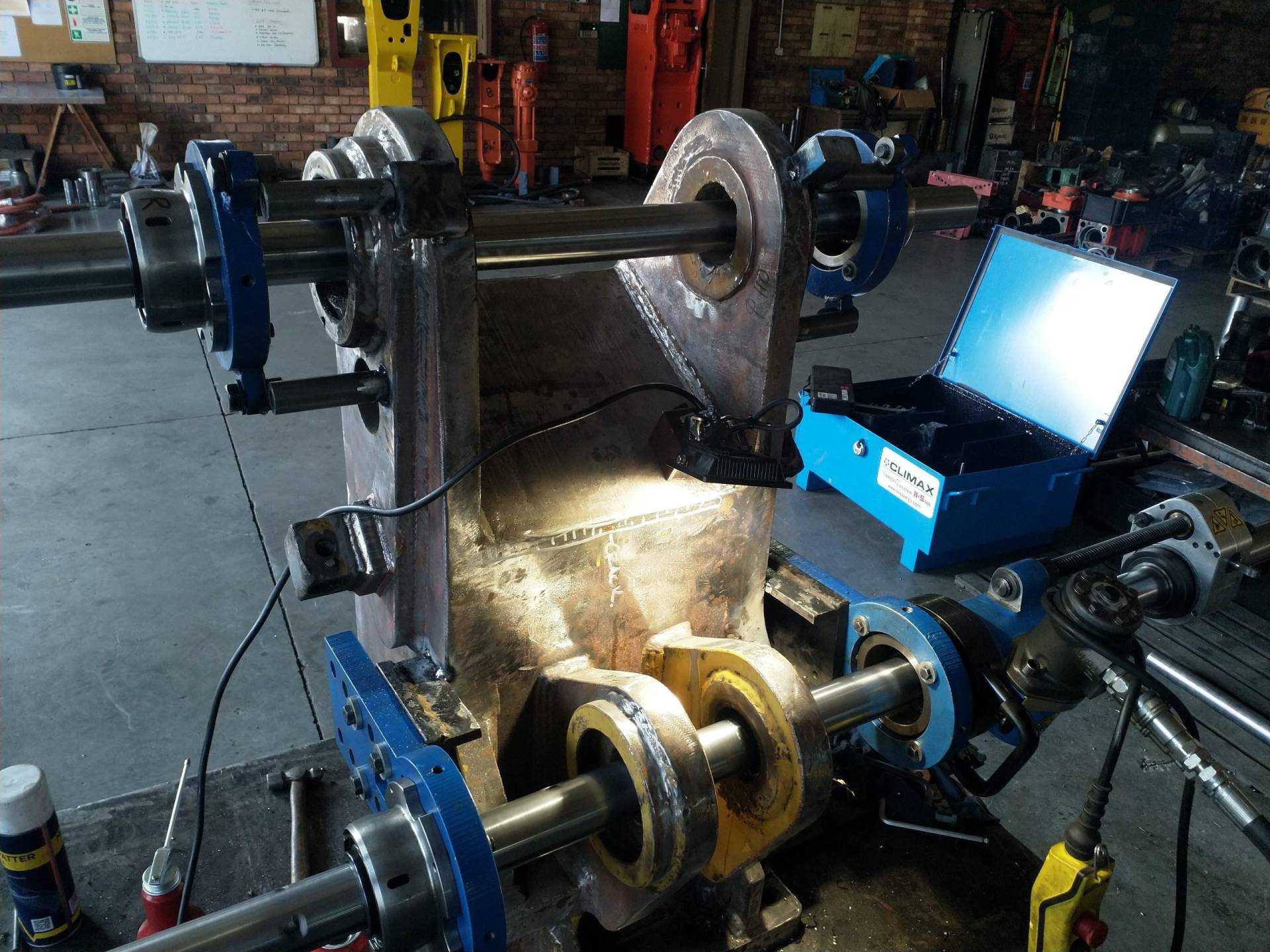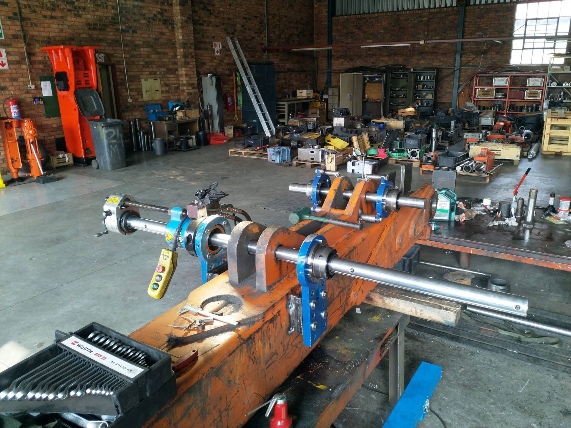 Line boring is the process where the inside diameter of existing worn bores are reduced by means of welding and then machined back to original equipment manufacturer specifications, making the centrelines of two or more bores collinear. Collinear bores appear in several large machine components such as excavator booms, sticks and buckets, dump truck bowls, gearboxes, presses. Precision alignment is of utmost importance on these machines, which is why line boring is commonly used to repair multiple collinear worn bores. Mobile line boring services are becoming the preferred service chosen by clients due to the high transport and road freight permit costs of large machine components.
